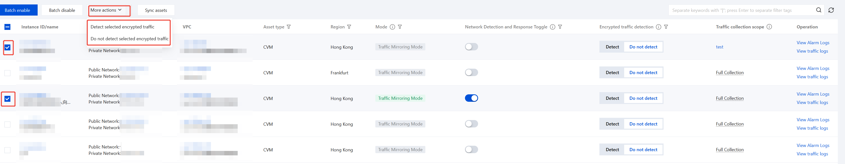 2. If you only need to uniformly configure the status of encrypted traffic detection for some CVM assets, you can do so by following the steps below: