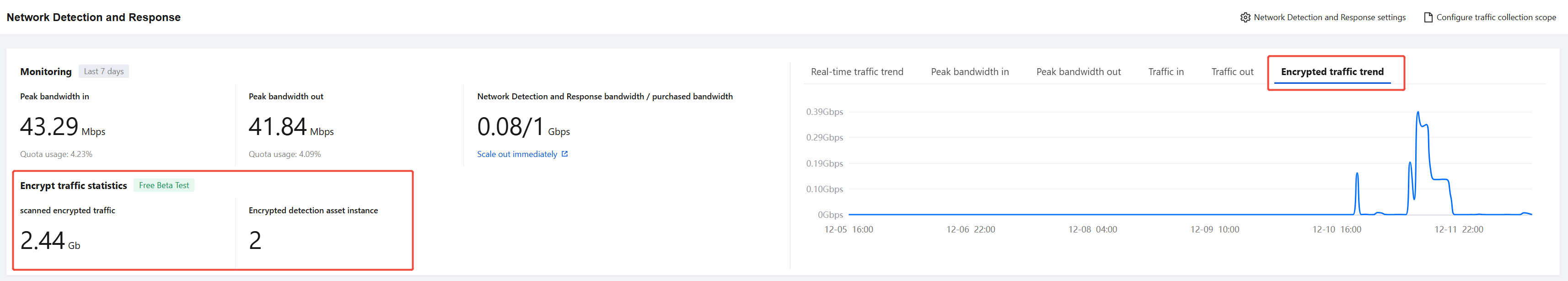 The system has added a dedicated statistics panel for encrypted traffic in the Monitoring module, helping you monitor the operating status and overall scale of encrypted traffic detection in real time. The core monitoring metrics include the following three items: