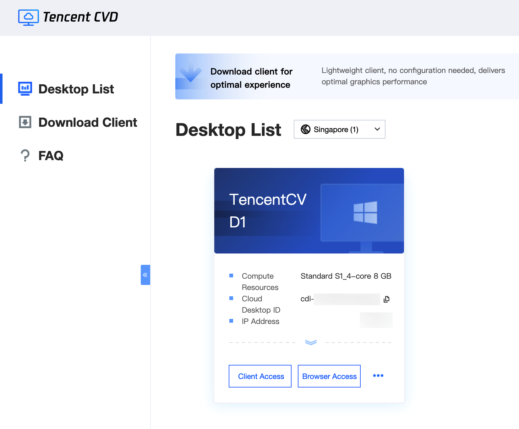 When logging in to the CVD portal from within the defined IP region, you can log in normally, and the CVD instance list is displayed.