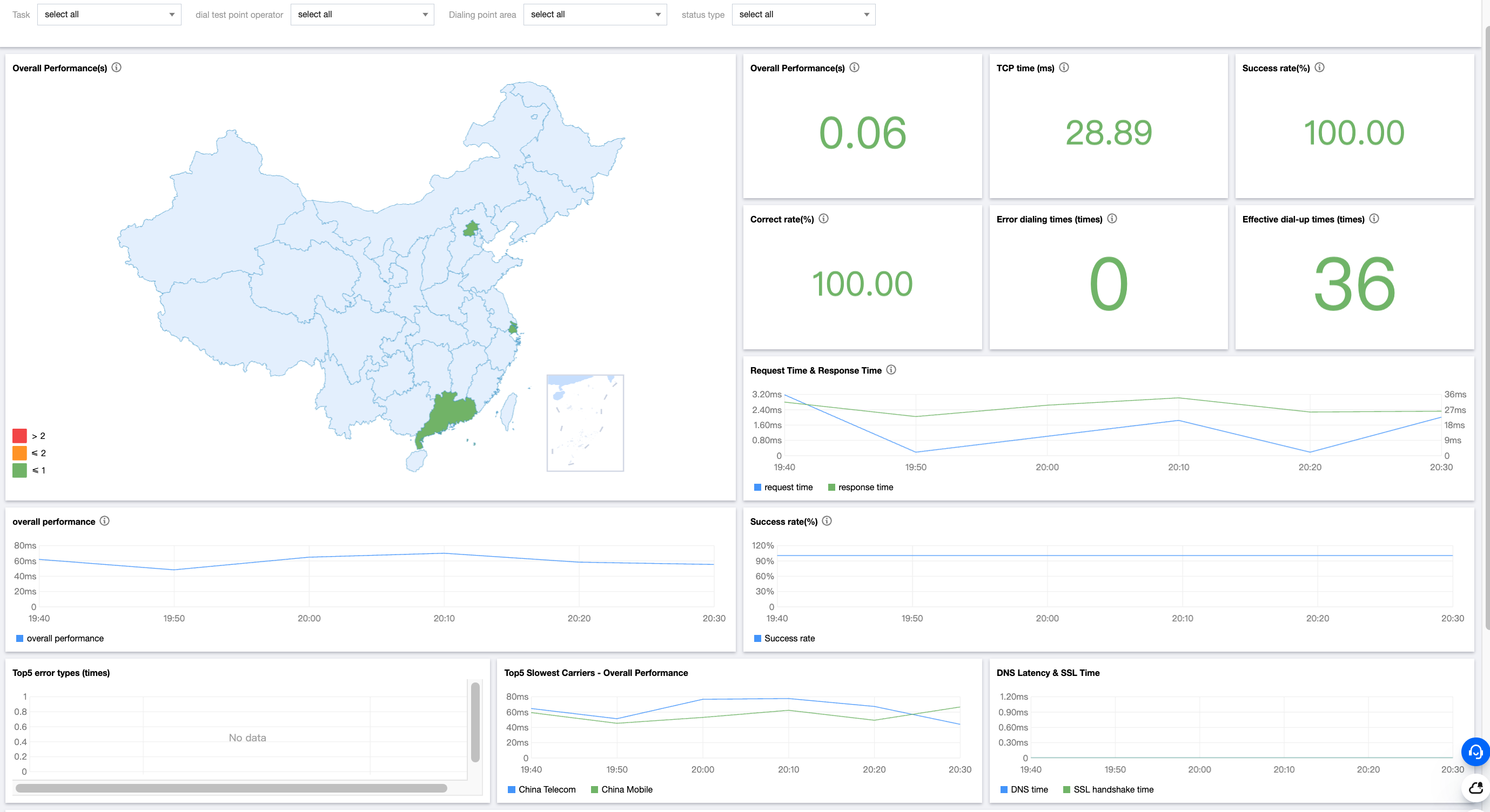 Overall performance (s) | The time from the start of the DNS process to the data receiving. |