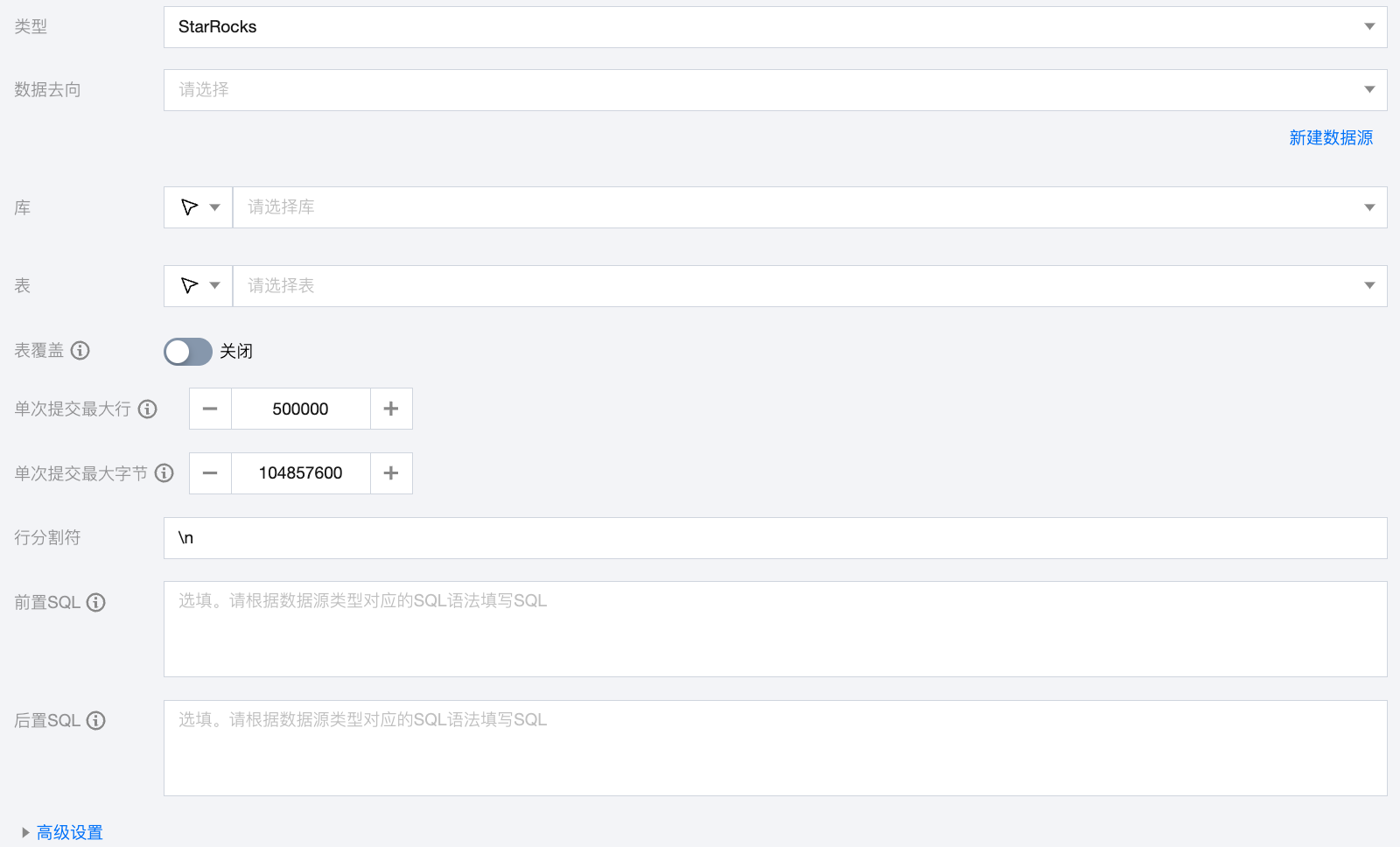 Data Destination | Select the pre-configured StarRocks data source from the target end |