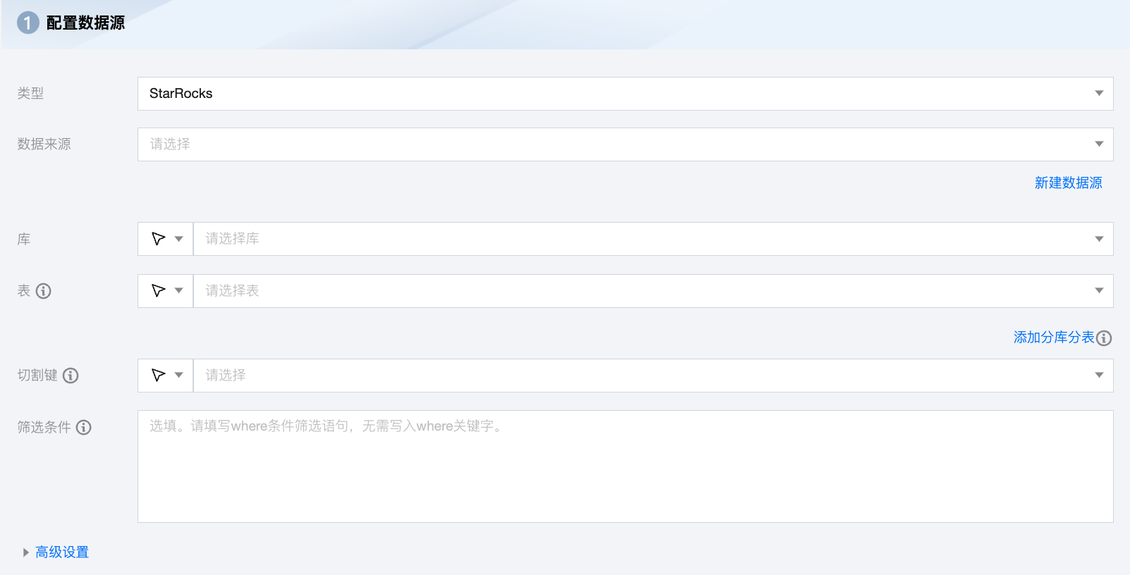 Data Source | Select the pre-configured StarRocks data source from the source end |
