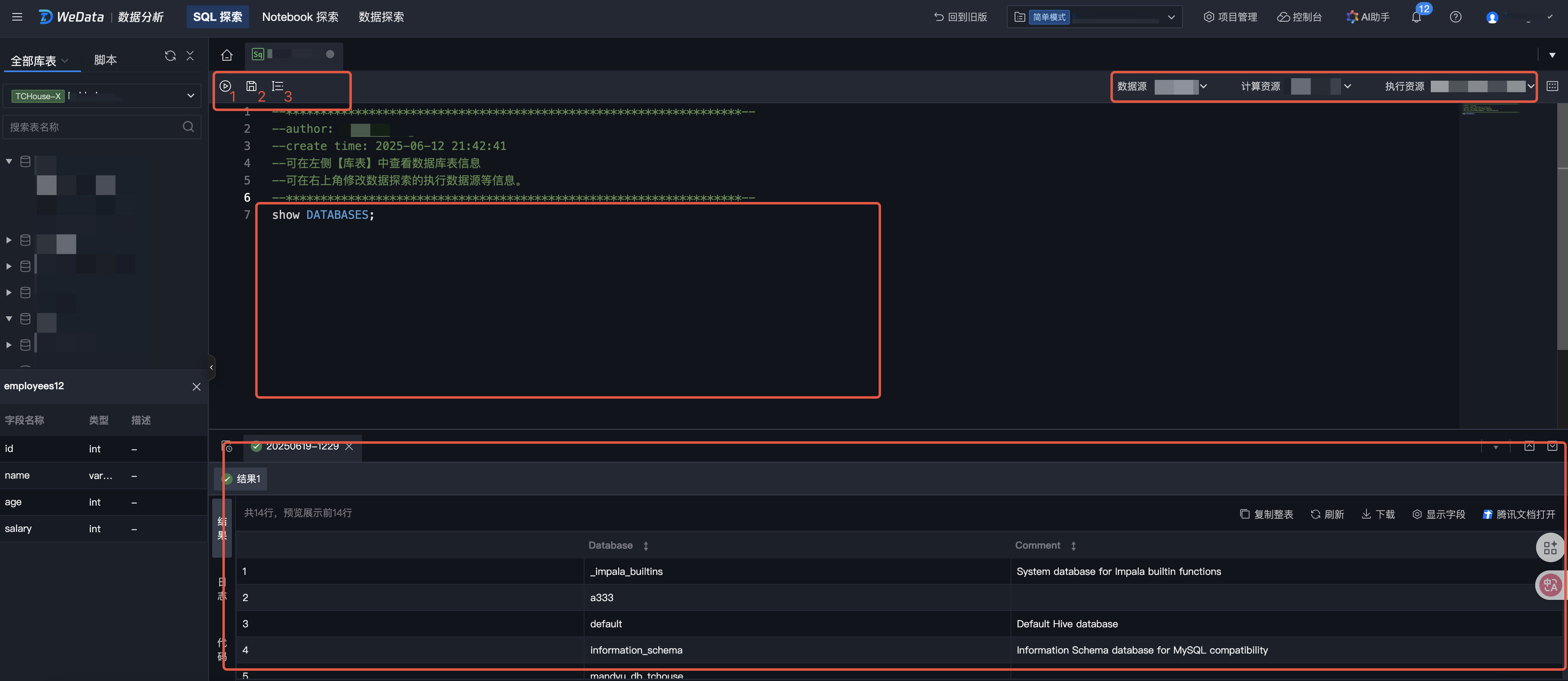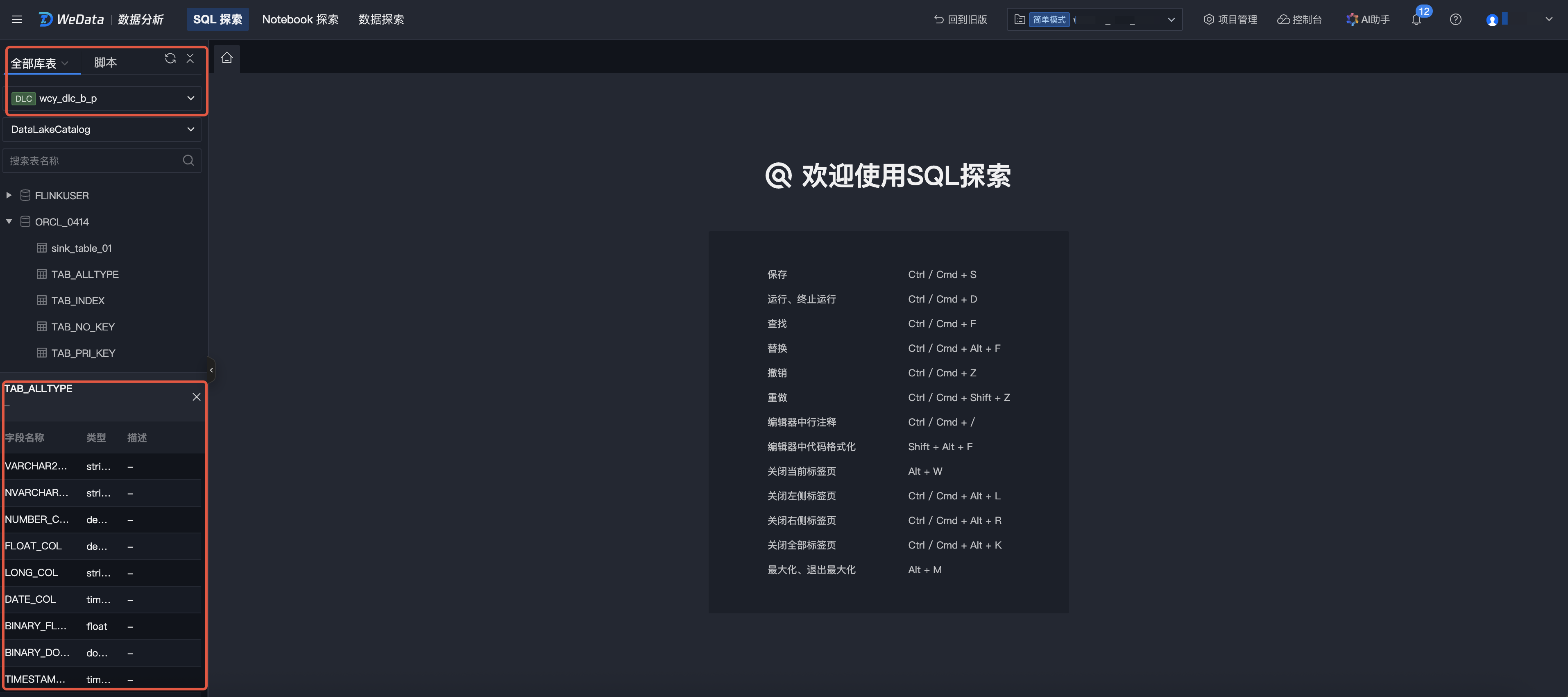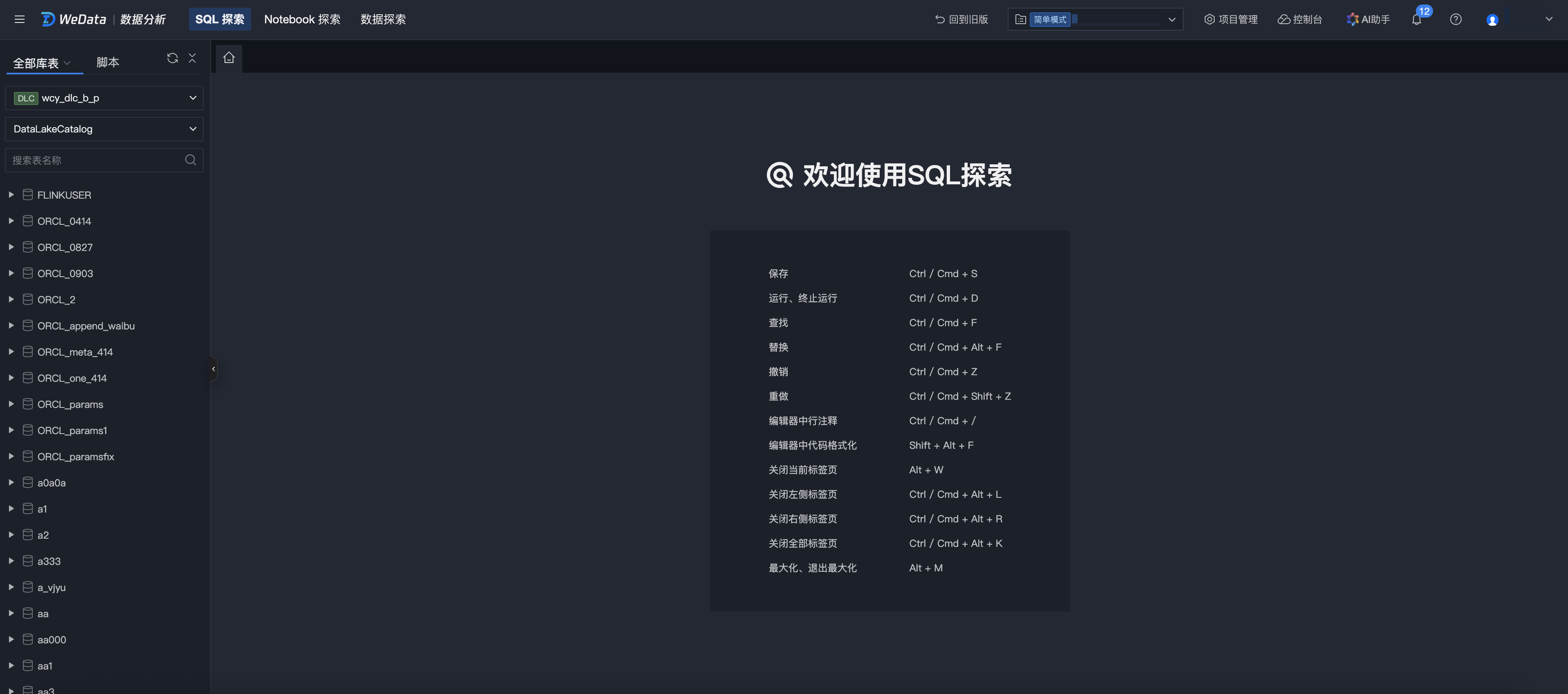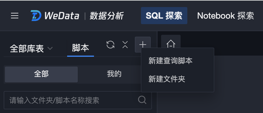 WeData SQL Exploration feature, oriented to data developers and business analysts, provides a convenient and quick data query and analysis IDE. It supports connecting to big data engines such as EMR and DLC for data exploration. Currently covered data source ranges include EMR-Hive, EMR-Kyuubi, EMR-Trino, EMR StarRocks, DLC, and TCHouse-X.