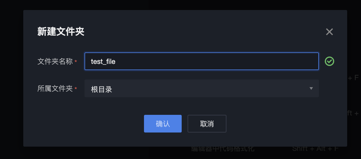 Fill in the folder name, select the folder, and click OK to create the instance successfully.
