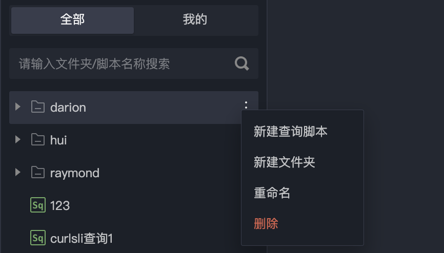 Method Two: Click the More button in the directory tree and select new query script.