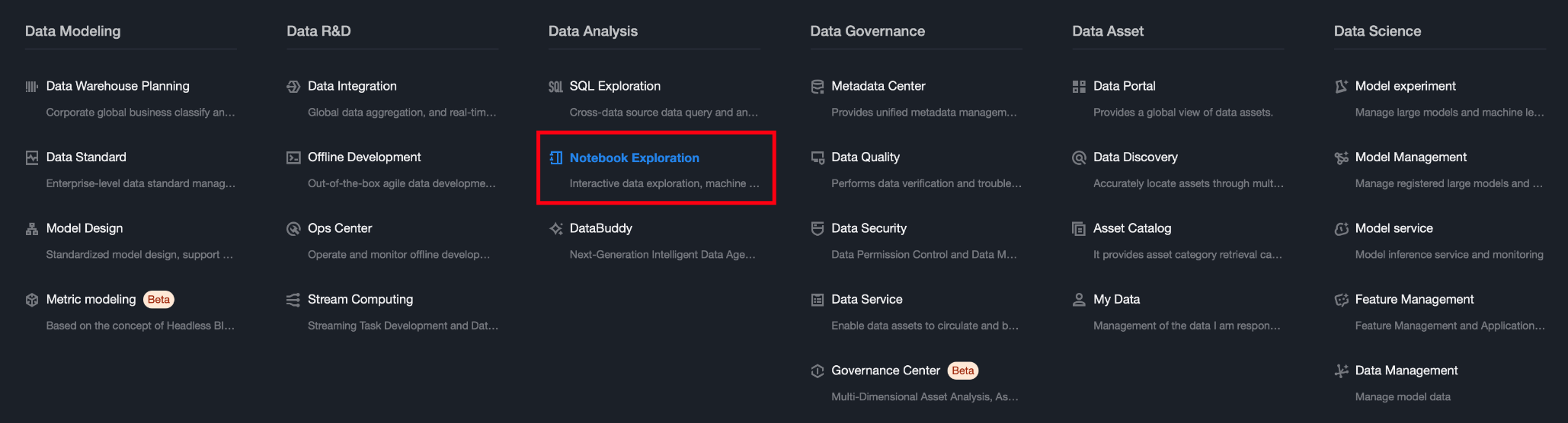 Note: Currently, Notebook Exploration is in the Invite Testing stage. You can contact ticket to enable the allowlist for trial use. Feature Overview