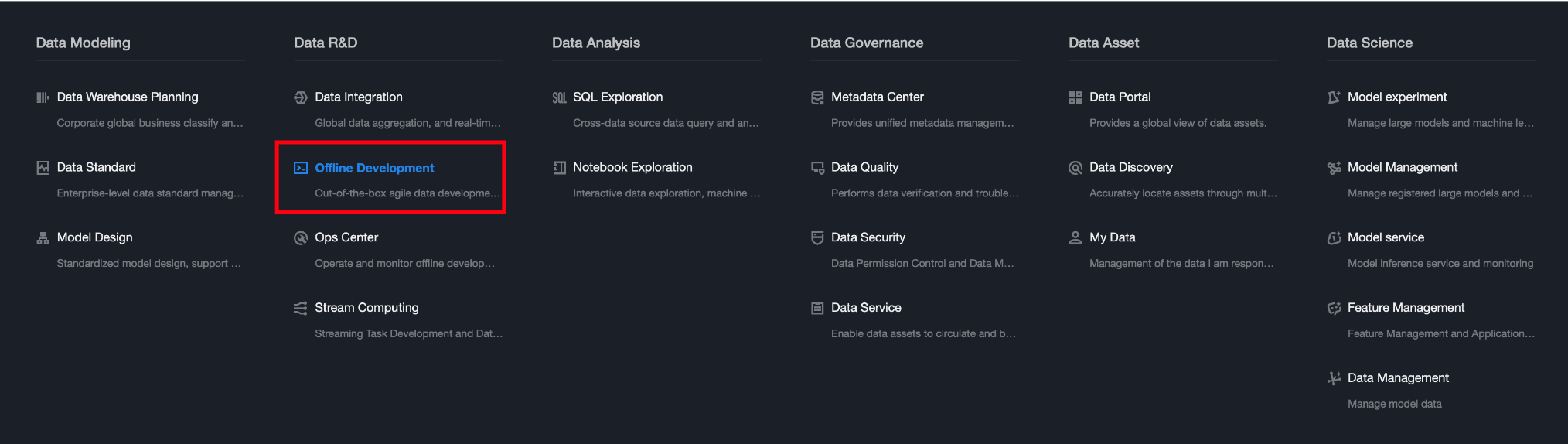 1. Enter the project and open the menu Data R&D > Offline Development.