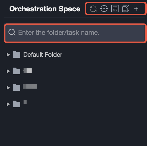 Refreshing | Refresh: Refresh the directory tree to get the latest state of the orchestration directory. Locate tree node: One-click locate the current tree node. Collapse tree node: One-click expand/collapse ALL directories. |