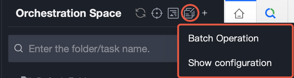 Batch | Batch operation:Supports performing batch operations on ALL computation tasks in the directory. Operations include task submission (batch supported), task deletion, task ownership changes, data source modification, task dependency modification, scheduling cycle modification, scheduling priority modification, scheduling parameter modification, etc. Batch operation records can also be viewed. Display configuration: Supports display and hide for AI assistant, cross-workflow category and node, highlight code in brackets by click brackets, code snippet, etc. |