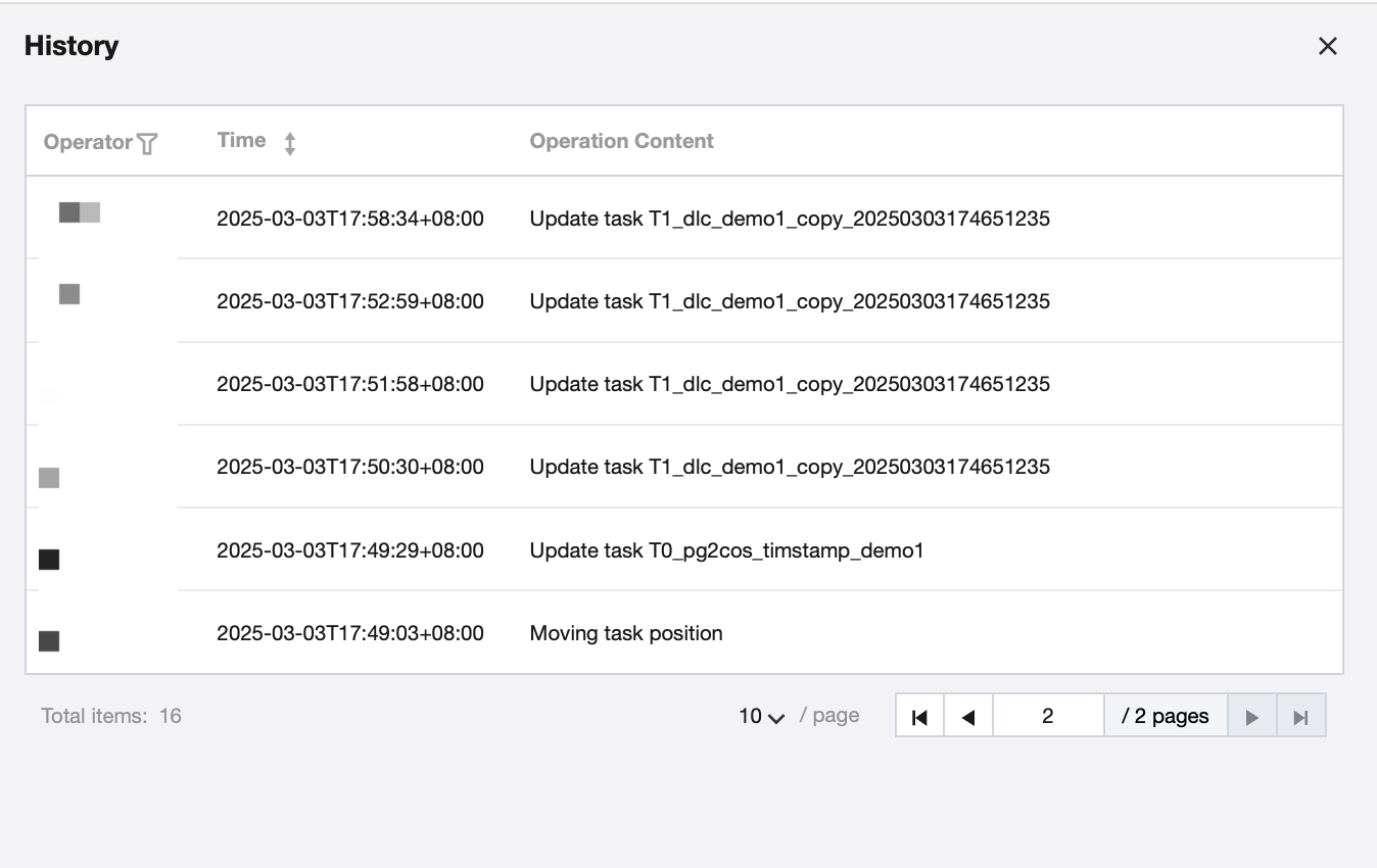 Rolling back | Roll back scripts and configurations of the task, excluding dependency relationship. Submission after rollback. After rollback, changes (including code and task configuration) not submitted will be lost. |