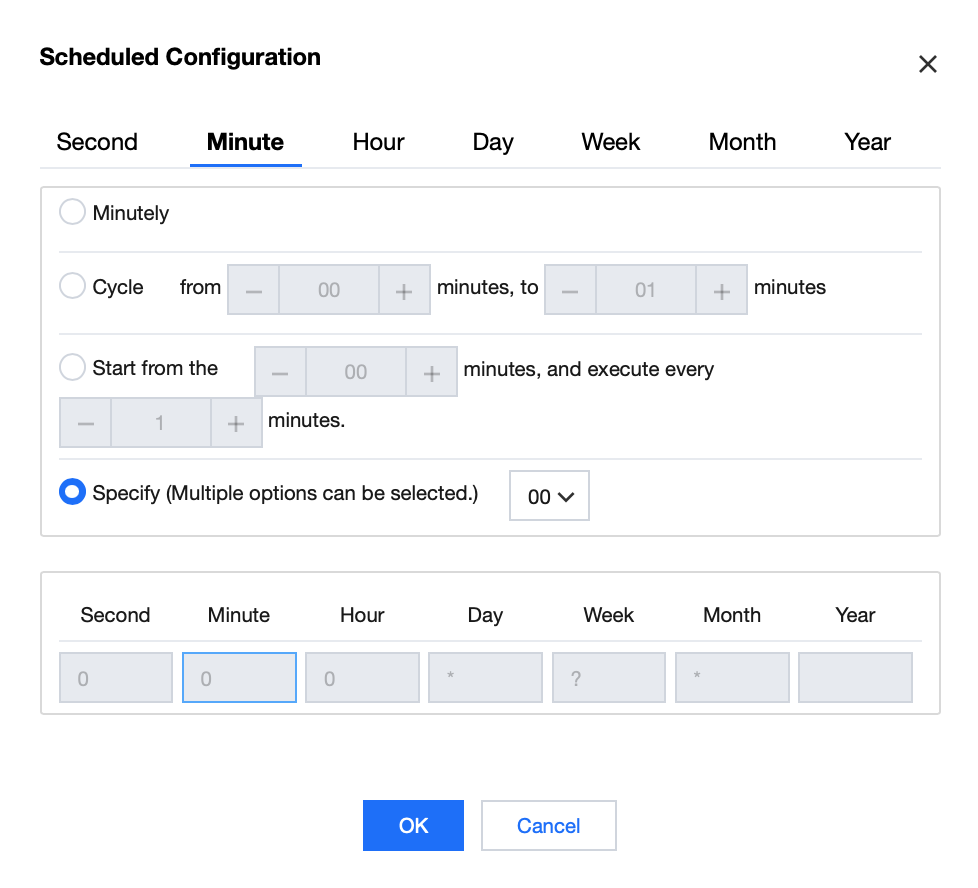 Scheduling Cycle | The execution cycle unit for task scheduling supports minute, hour, day, week, month, year, and one-time. |