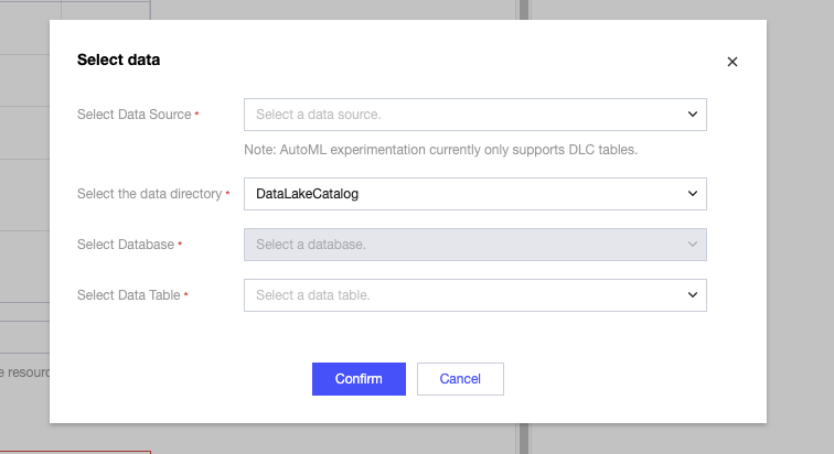 1. Engine selection: Only supports "DLC engine". Select the corresponding resource group from the dropdown menu (Note: The resource group must match the network location of the data).