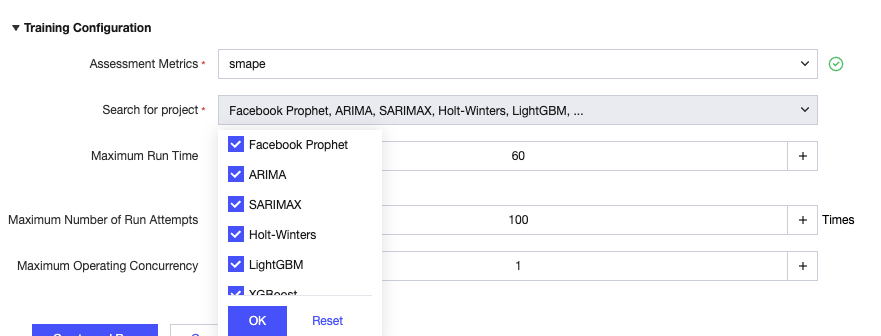 Maximum Number of Run Attemptss: Default 100 (adjustable, refers to the number of parameter combinations for automatic model testing).