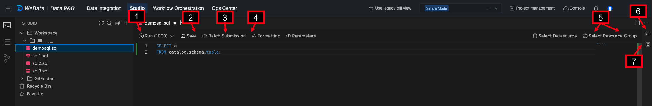 Currently, SQL execution in Studio runs on a scheduling resource group. For each execution, the result preview supports up to 1,000 rows.