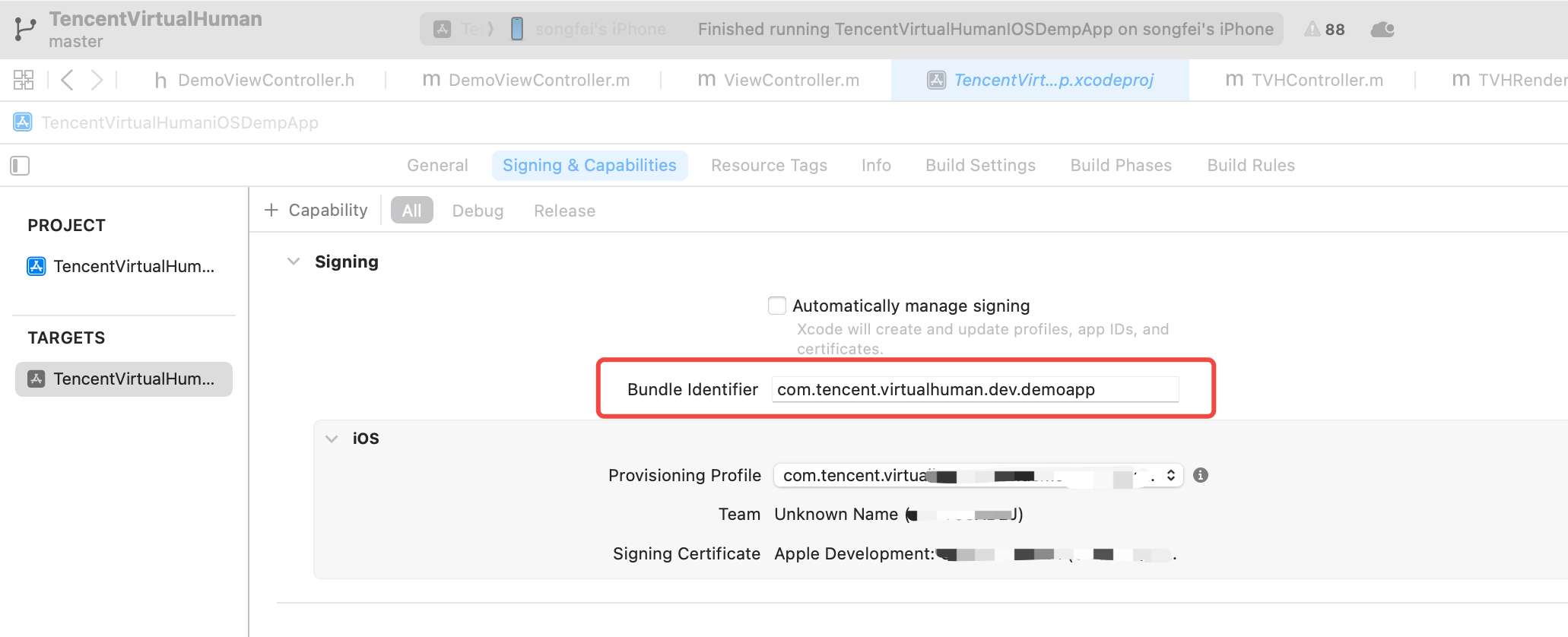 Bundle ID for iOS devices can be found in App Settings under Signing & Capabilities in Xcode, as shown below: