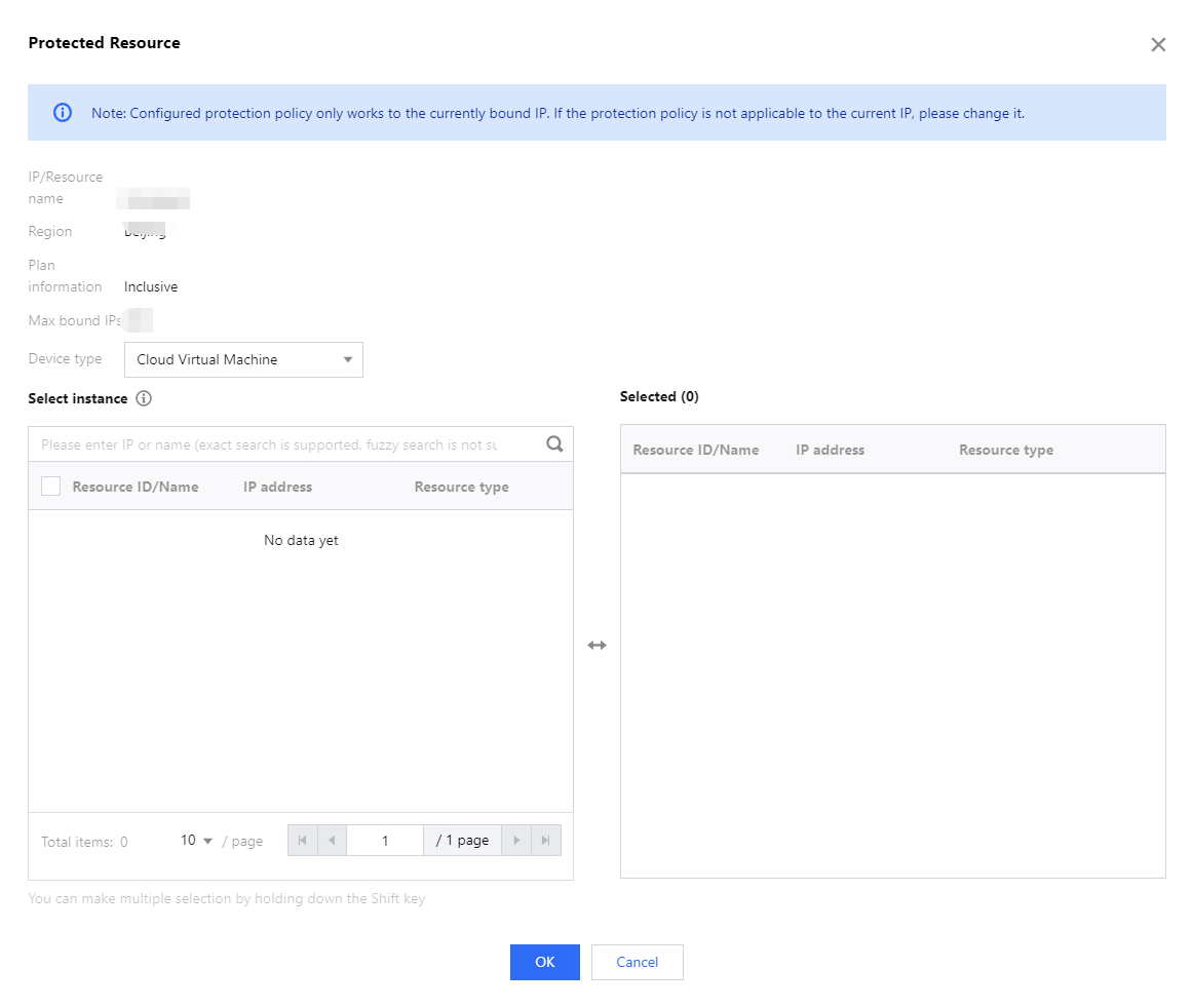 Select instance: You can select one or more instances. The maximum instances selected cannot exceed the number of bound IPs.