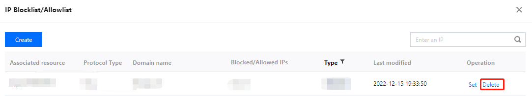 5. Now the rule is added to the IP Blocklist/Allowlist section. You can click Delete on the right of the rule to delete it.