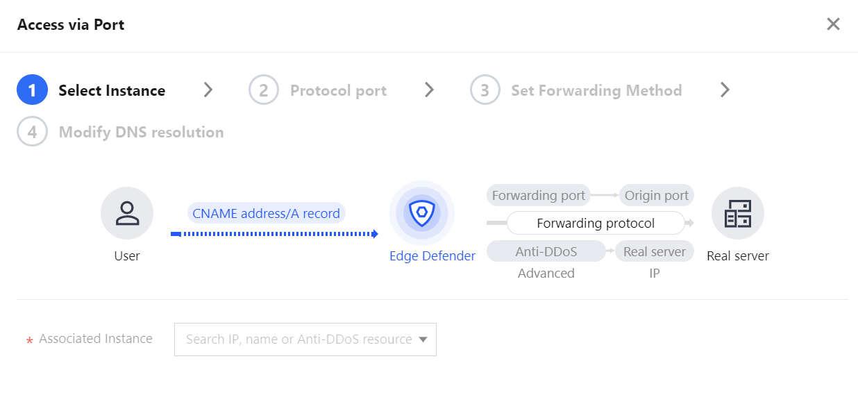 3. In the pop-up window, select an associated instance ID and click Next: Set Protocol Port.