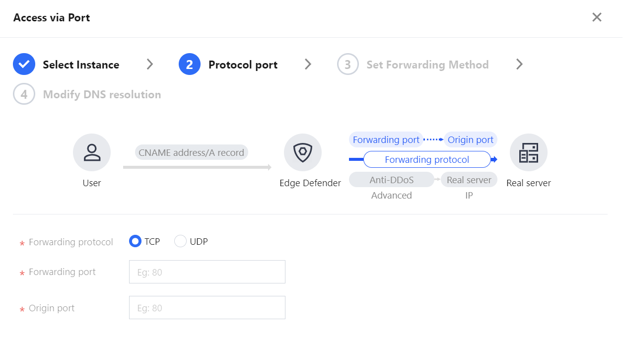 If the forwarding port you specify in the second step Set Protocol Port is occupied, you cannot proceed to the next step.