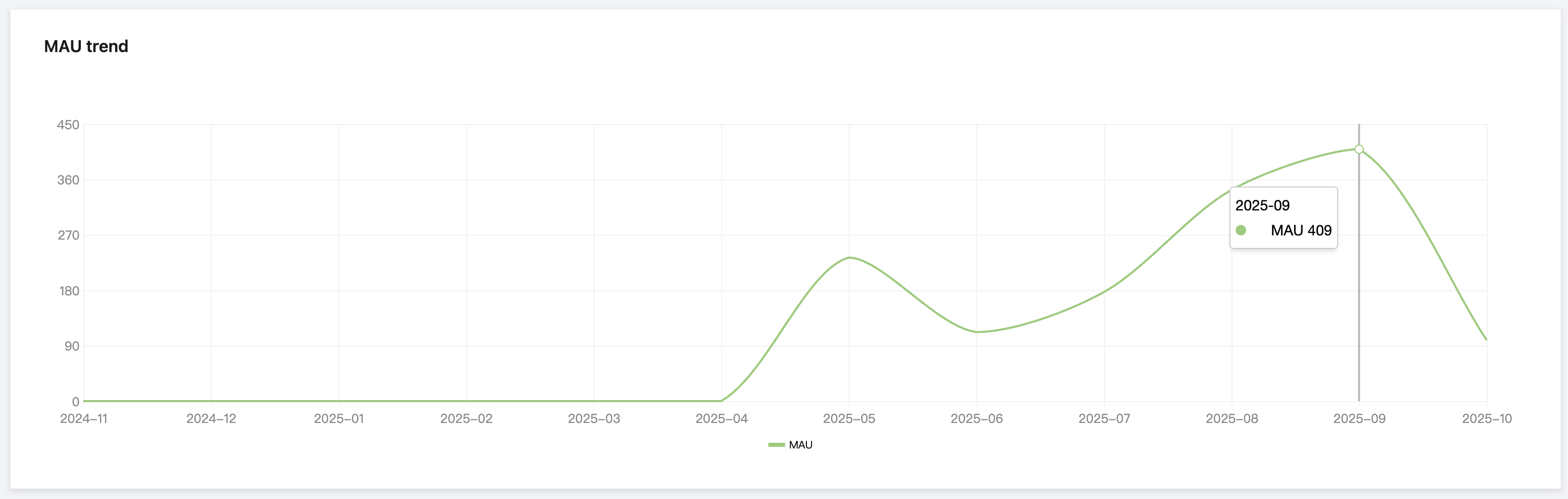 Daily MAU changes within the selected time range, based on Beijing Time (UTC +8).