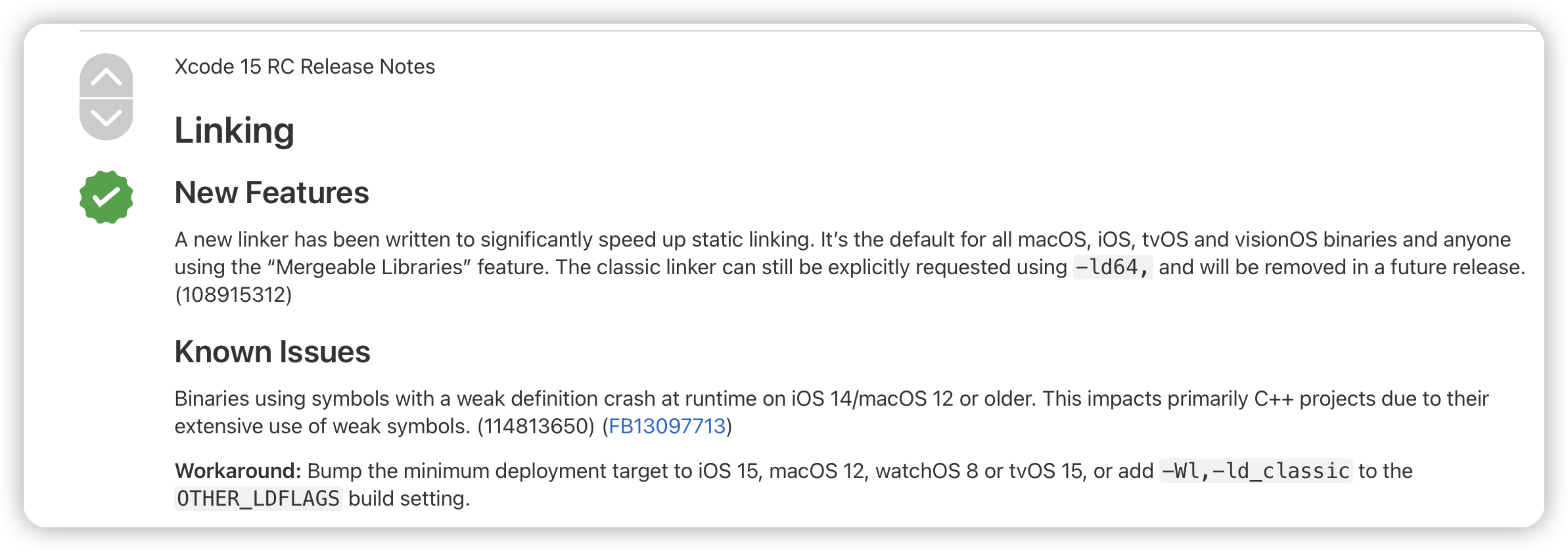 Crash issues on iOS 12 and earlier devices after compiling with Xcode 15 and later versions