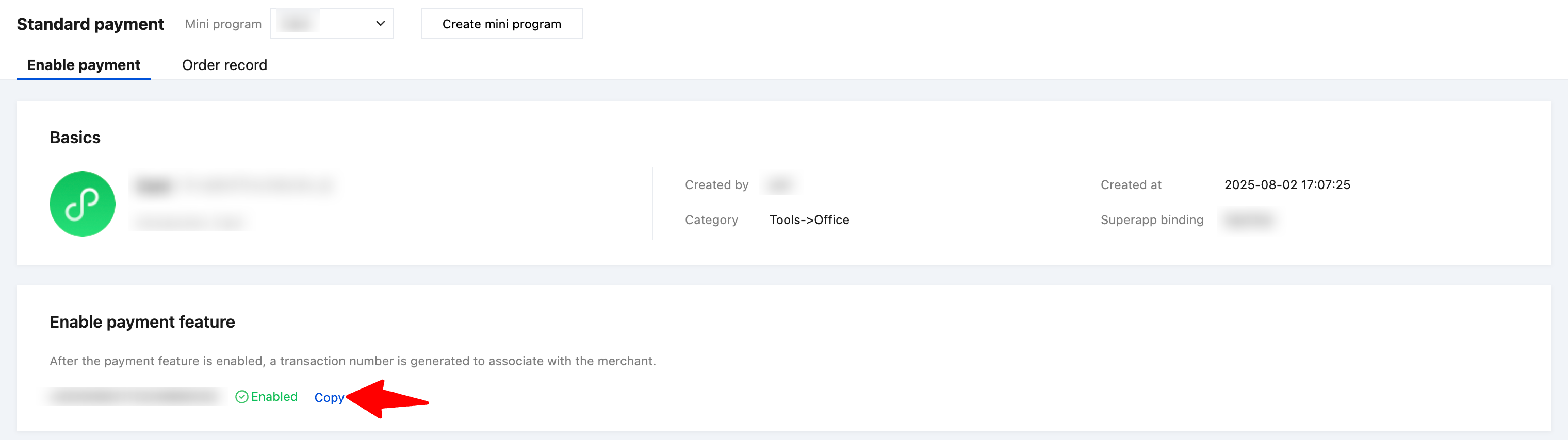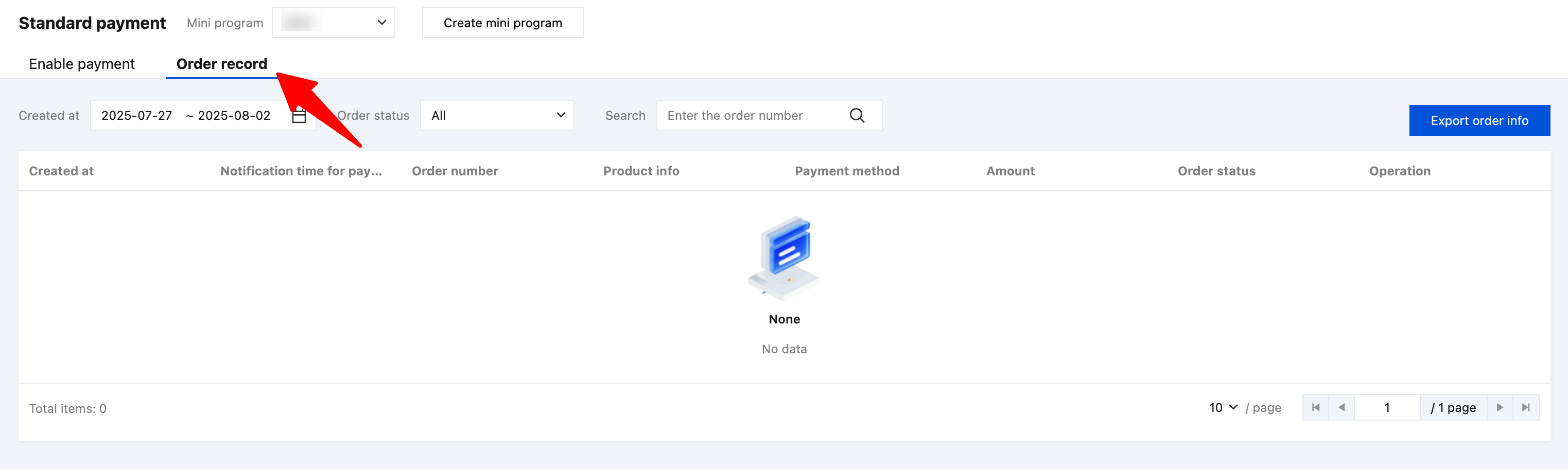 After using the payment function in your mini program, the generated payment orders can be viewed in the order record.