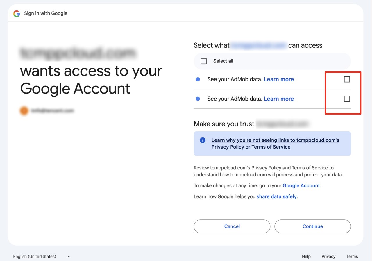 Click Request authorization to go to the Google authorization page. Here, you need to select an account to log in. Please choose the Google account you used to create the ads.