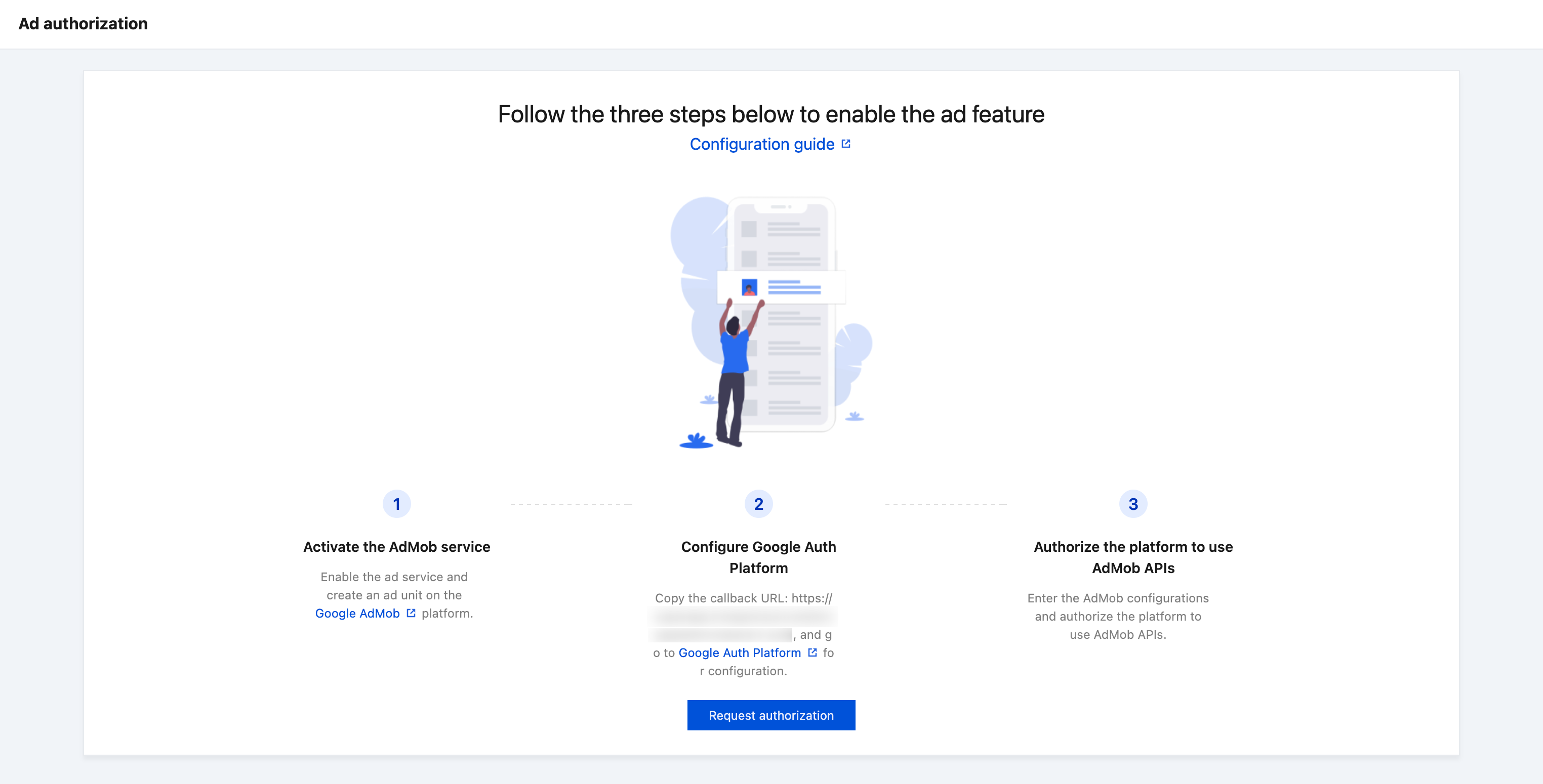 After completing the preliminary steps, you need to obtain ad authorization to enable the ad features.