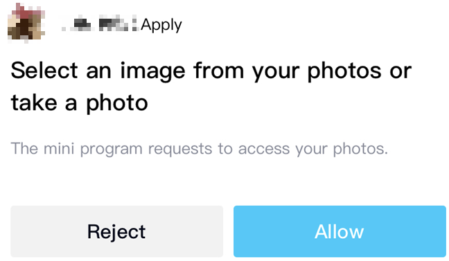/*** @brief Creates a custom authorization window** @param frame Window size* @param scope The scope of the authorization* @param title Permission name* @param desc Permission description* @param privacyApi The API being called that requires the permission* @param appInfo Information of the current mini program* @param allowBlock Callback for allowing the permission* @param denyBlock Callback for denying the permission*/- (UIView *)createAuthorizeAlertViewWithFrame:(CGRect)framescope:(NSString *)scopetitle:(NSString *)titledesc:(NSString *)descprivacyApi:(NSString *)privacyApiappInfo:(TMFMiniAppInfo *_Nullable)appInfoallowBlock:(void (^)(void))allowBlockdenyBlock:(void (^)(void))denyBlock;