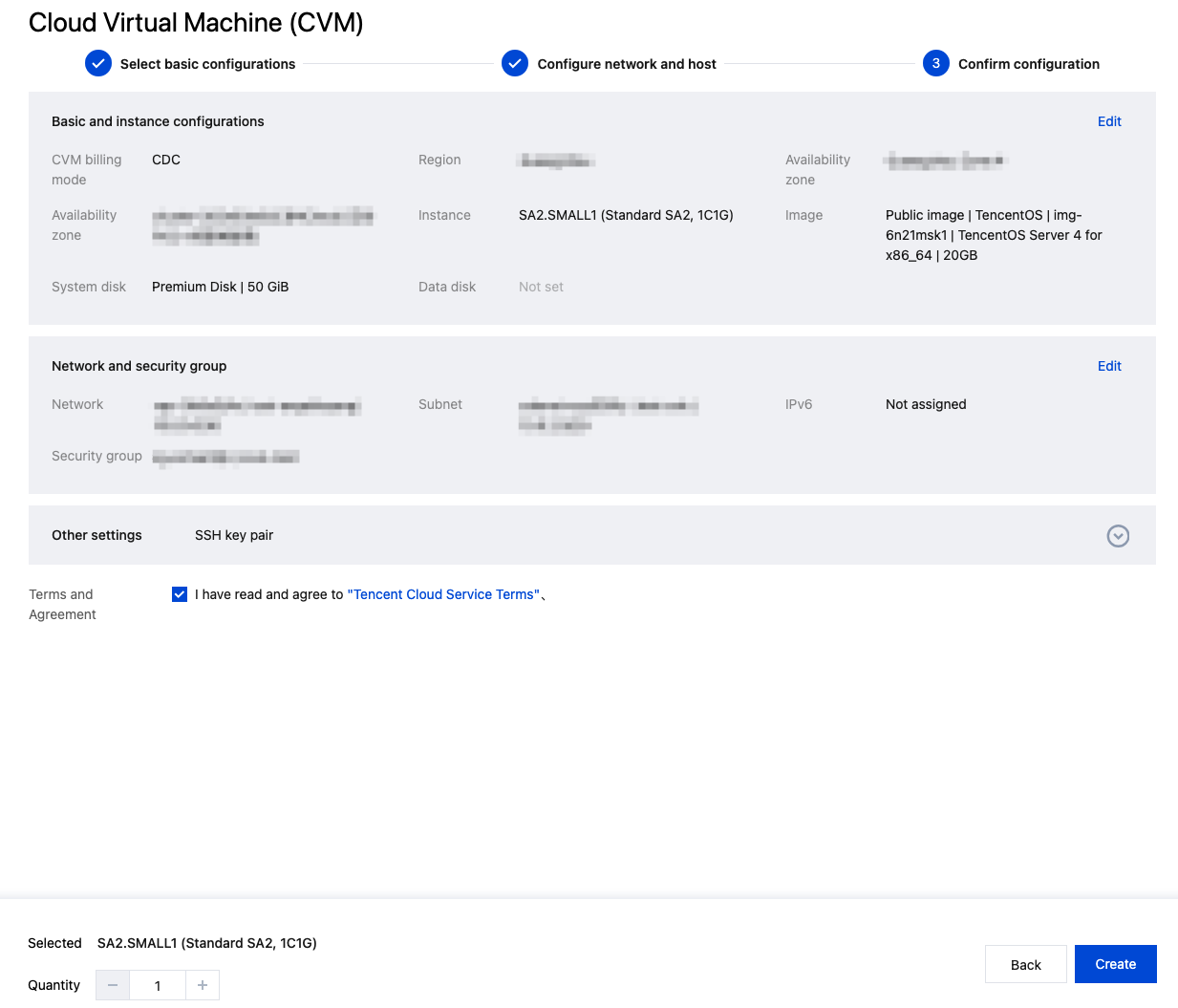 6. Confirm your configuration information, read and select I have read and agree toTencent Cloud Service Agreement, click Create Now to complete CVM creation. 7. On the Resource Management page of your dedicated cluster, you can view the created CVM information. Click the CVM instance ID to go to the CVM console to view the details of your instance.