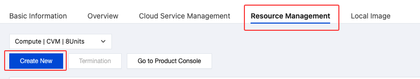 4. Click Resource Management, select the CVM Tag, and click New to configure CVM.