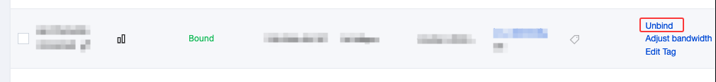 If you need to unbind from a CVM or change the bound CVM, in the Elastic IP list, click Unbind in the Operation column of the target Elastic IP, and confirm the unbinding information in the dialog box.