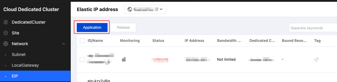 This article describes how to request an Elastic IP in Tencent Cloud CDC.