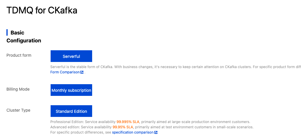 5. On the configuration page, configure according to your business requirements. After configuration, click Buy Now to complete the creation of CKafka.