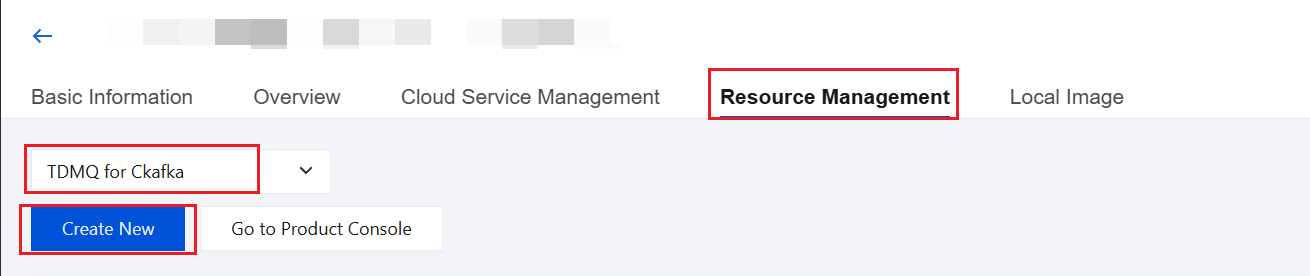 4. Click Resource Management, select the CKafka Tag, and click Create New to configure CKafka.