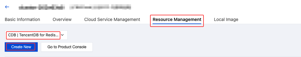 1. Log in to the Tencent Cloud CDC console, in the left sidebar, click Dedicated Cluster to go to the Tencent Cloud CDC management page. 2. Click Resource Management, select the cloud database Redis Tag, and click New.