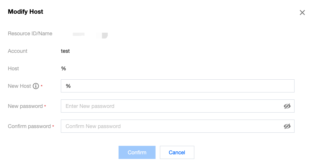 Modifying the host address requires resetting the account's password. The account's read and write access may be affected during the modification process, so it is advised to disconnect with caution.