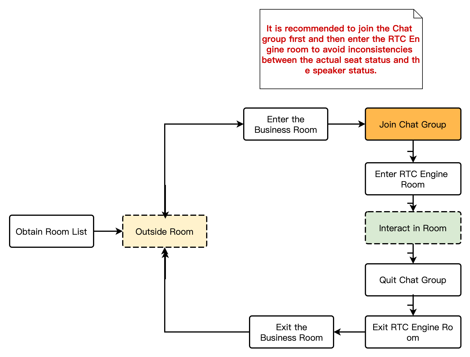 Create Room: After users log in to the business system, they can create a room. The room list needs to be updated after a room is created.