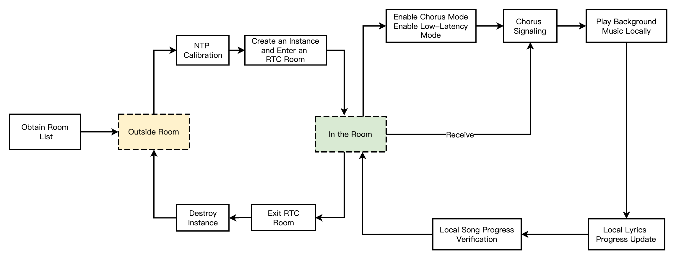 2. The singers need to listen and receive chorus signalings, preloading accompaniment resources.