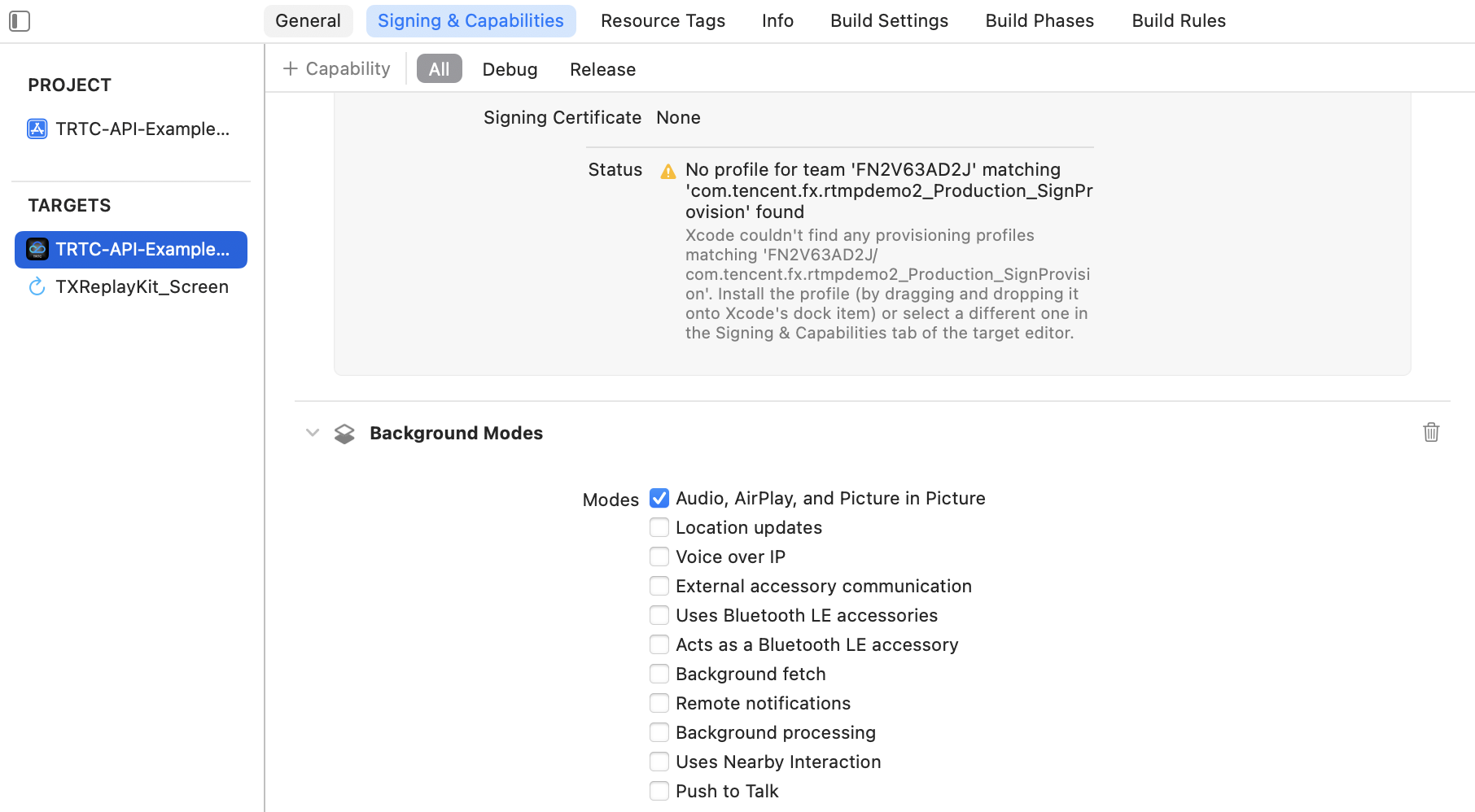 @Overridepublic void onTaskRemoved(Intent rootIntent) {super.onTaskRemoved(rootIntent);// For example, execute room exit for Real-Time Communication Engine (RTC Engine) here to terminate all ongoing audio capture and playback.TRTCCloud mTRTCCloud = TRTCCloud.sharedInstance(this);mTRTCCloud.exitRoom();}
