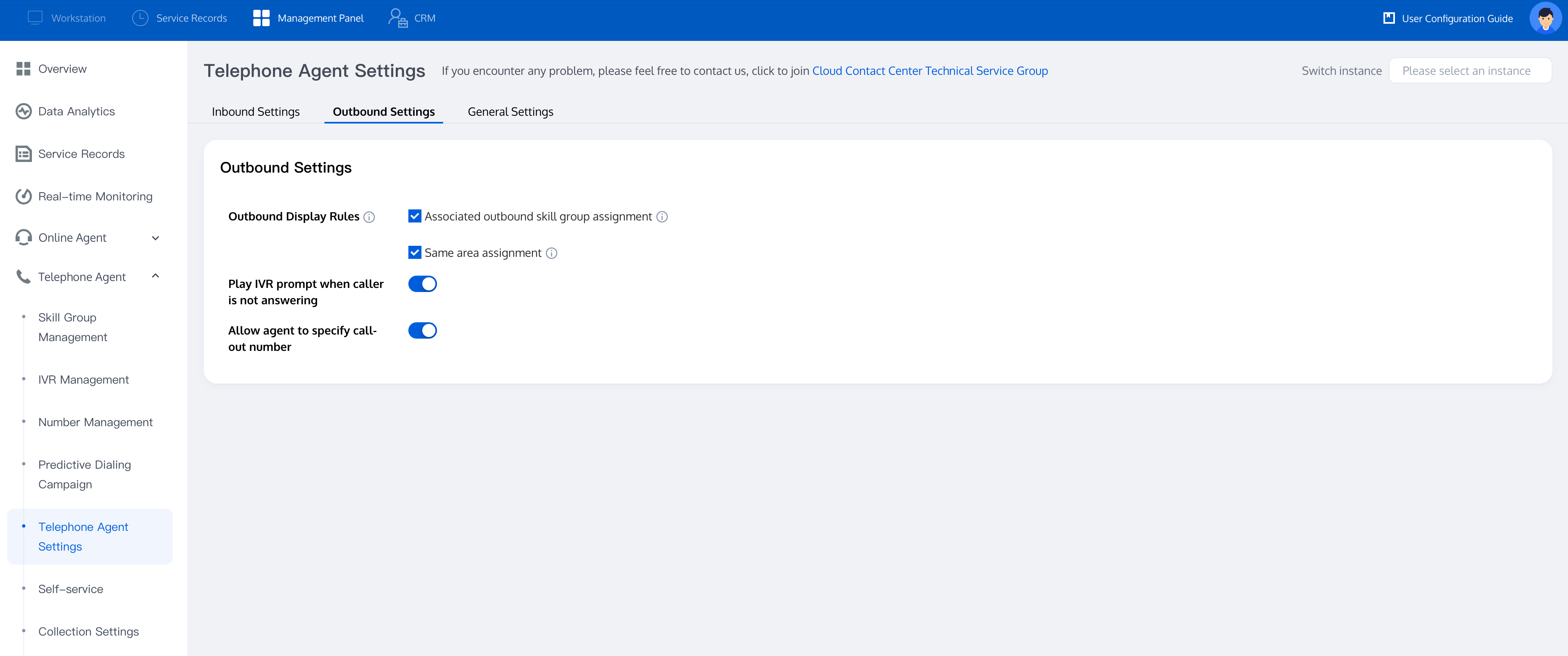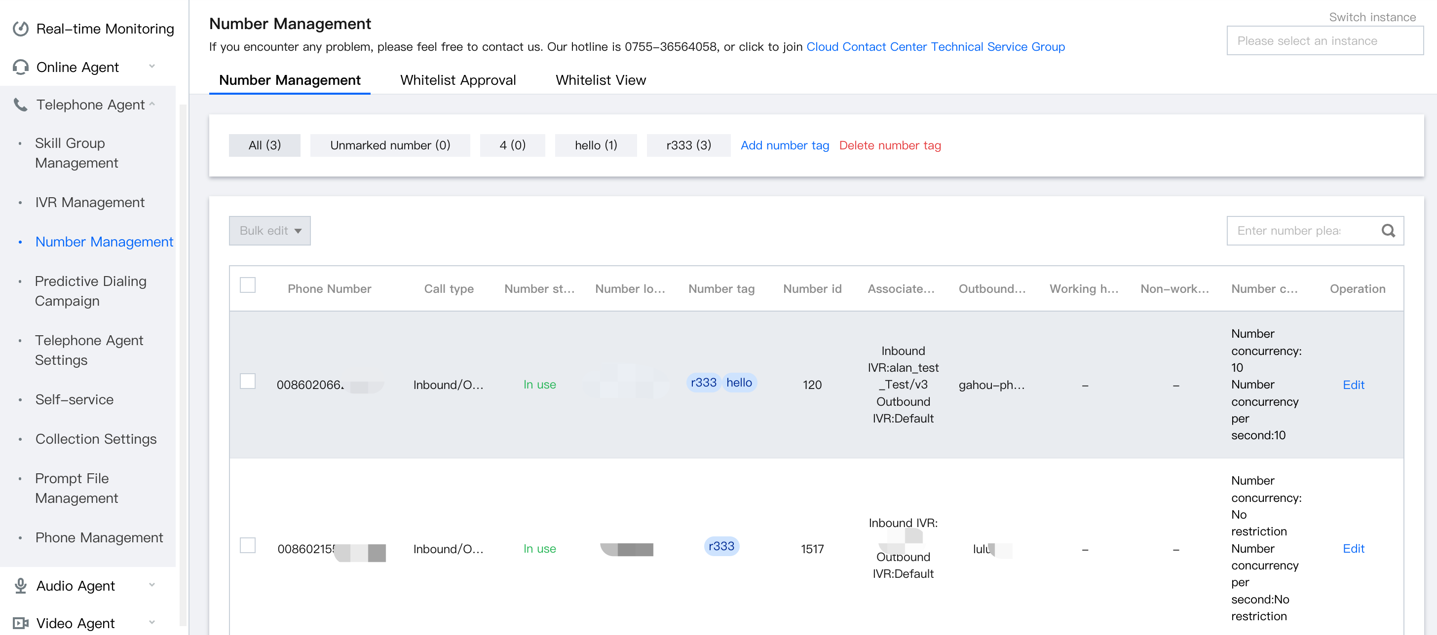 Go to Voice Agent > Number Management , select the number, click Edit (supports add IVR flow, group members, etc.) Go to Telephone Agent Settings > Outbound Call Settings to set up your preference 2. Outbound Call Modes