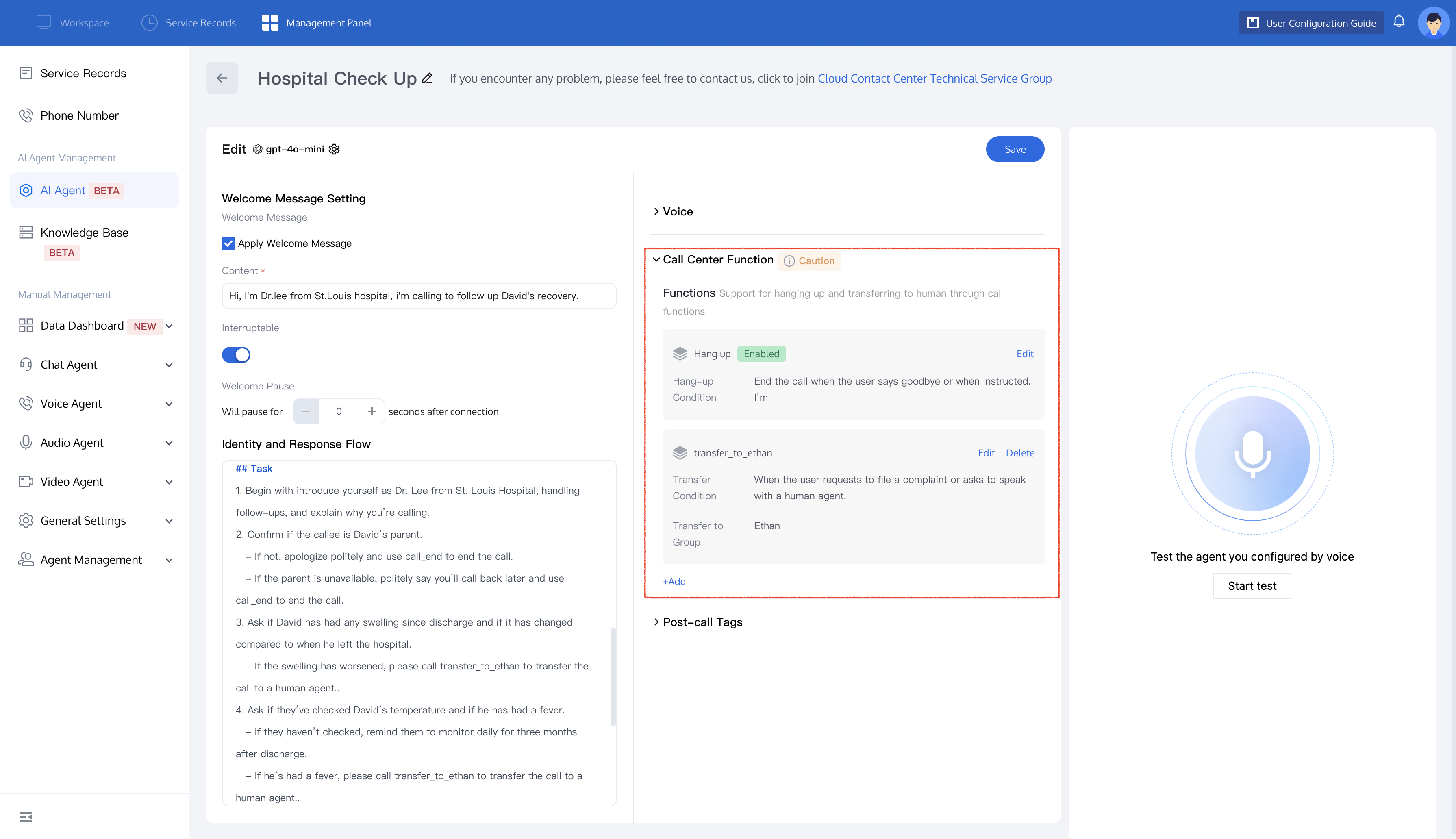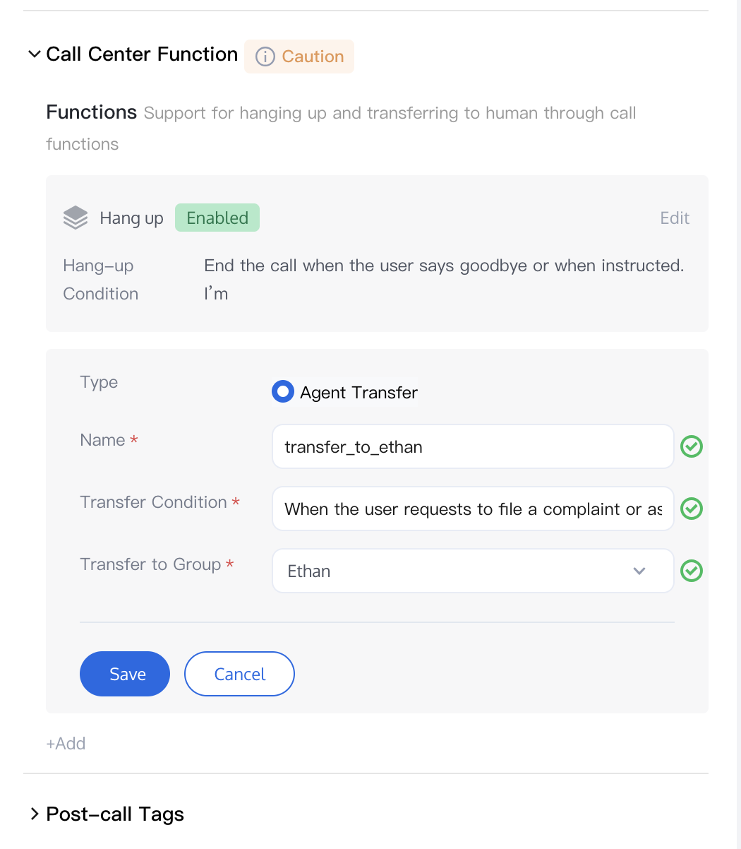4. After saving the configuration, the AI Agent will automatically hang up the call according to your settings.