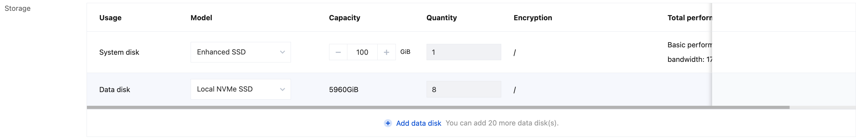 System disk: Used for installing the operating system. Both the type and size can be flexibly selected (storage capacity adjustment is not supported for local system disk instances).