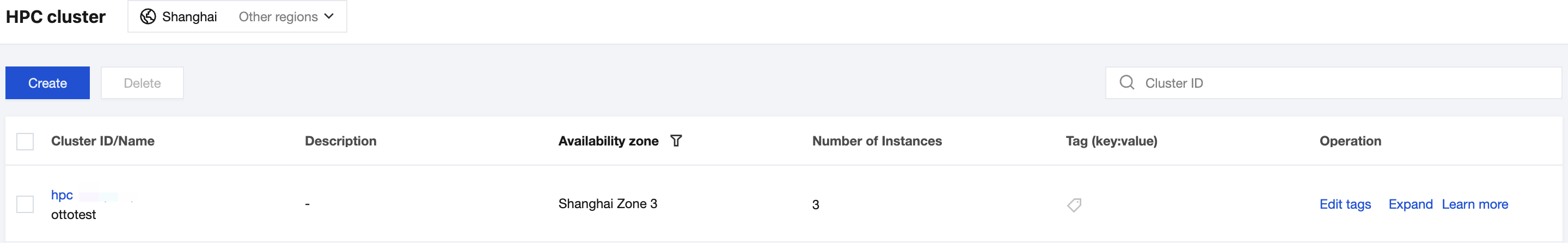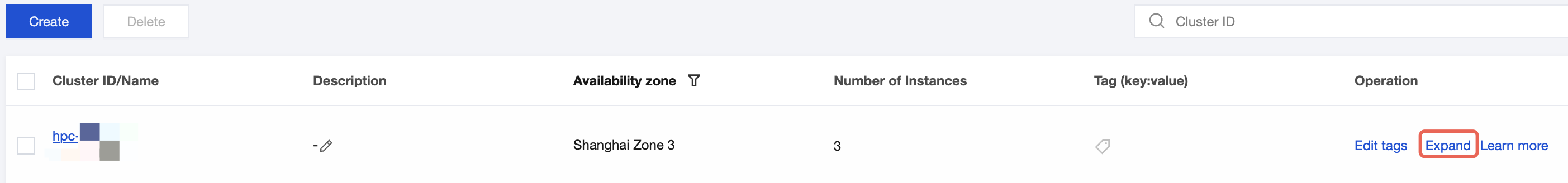 2. On the HPC Cluster page, click Expand in the Operation column of the target cluster to enter the instance purchase page.
