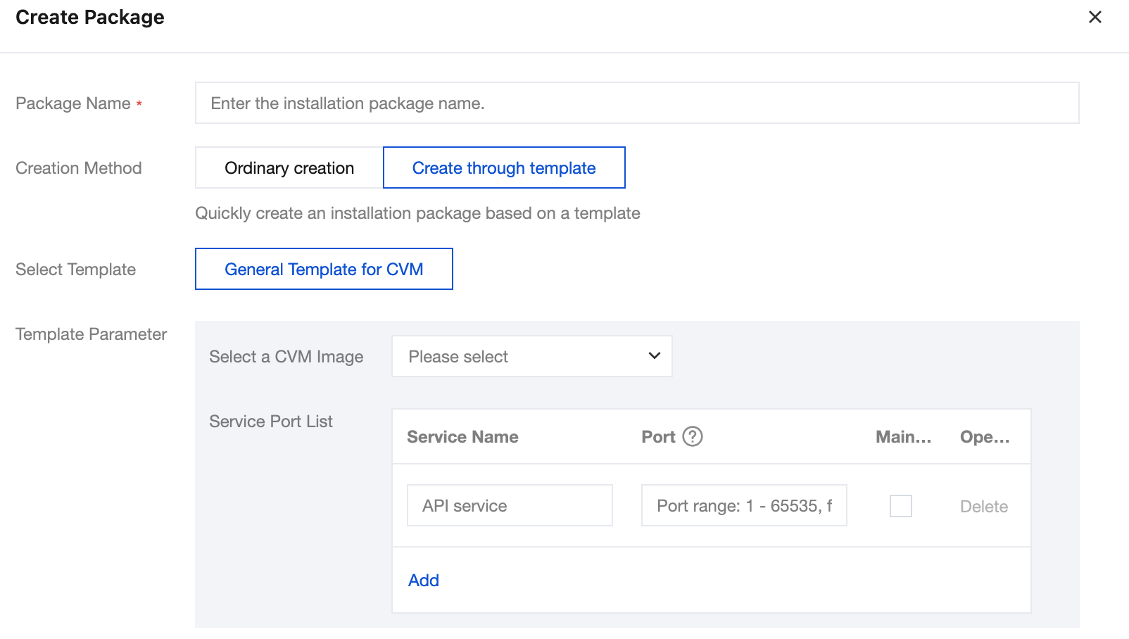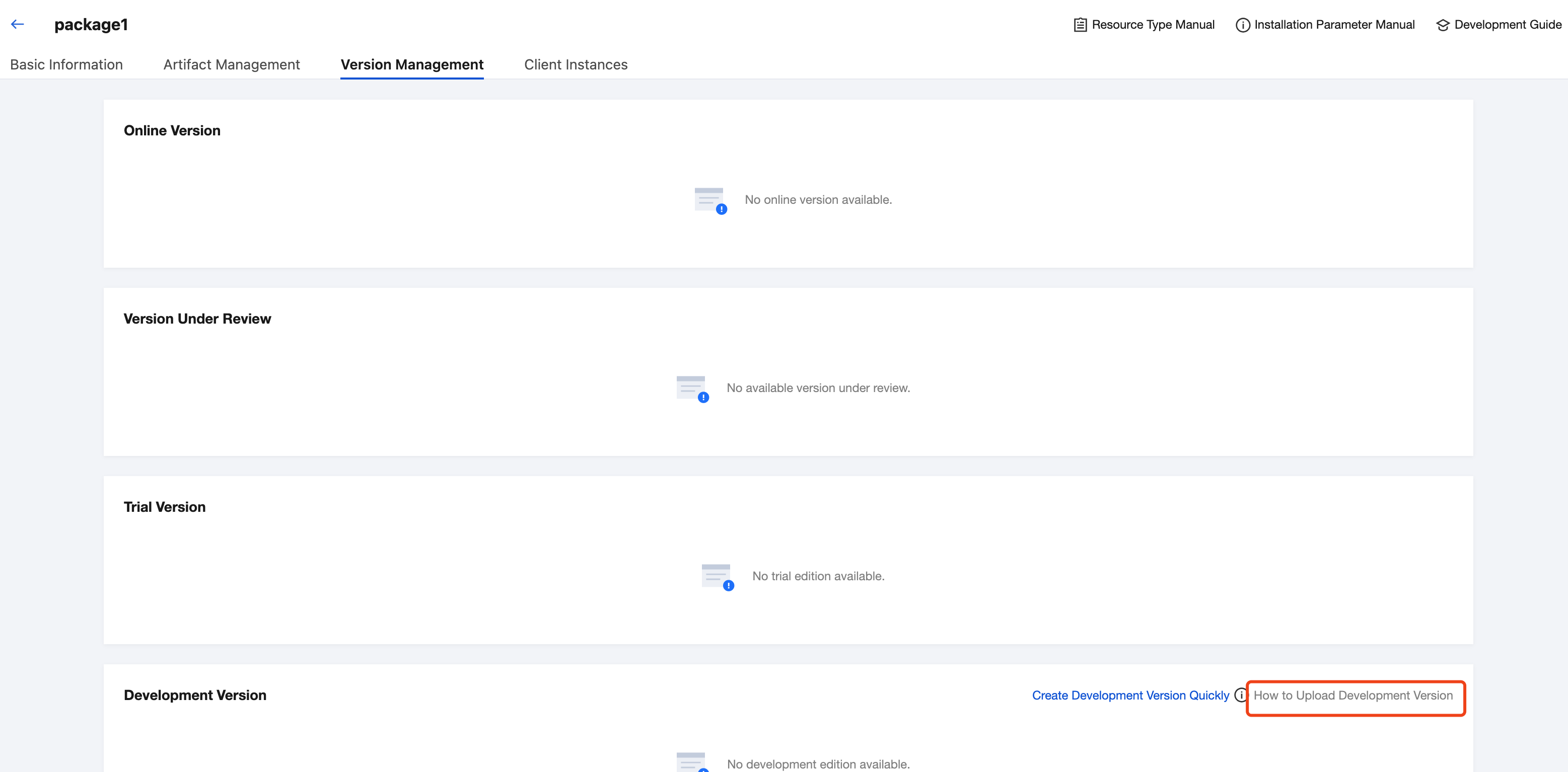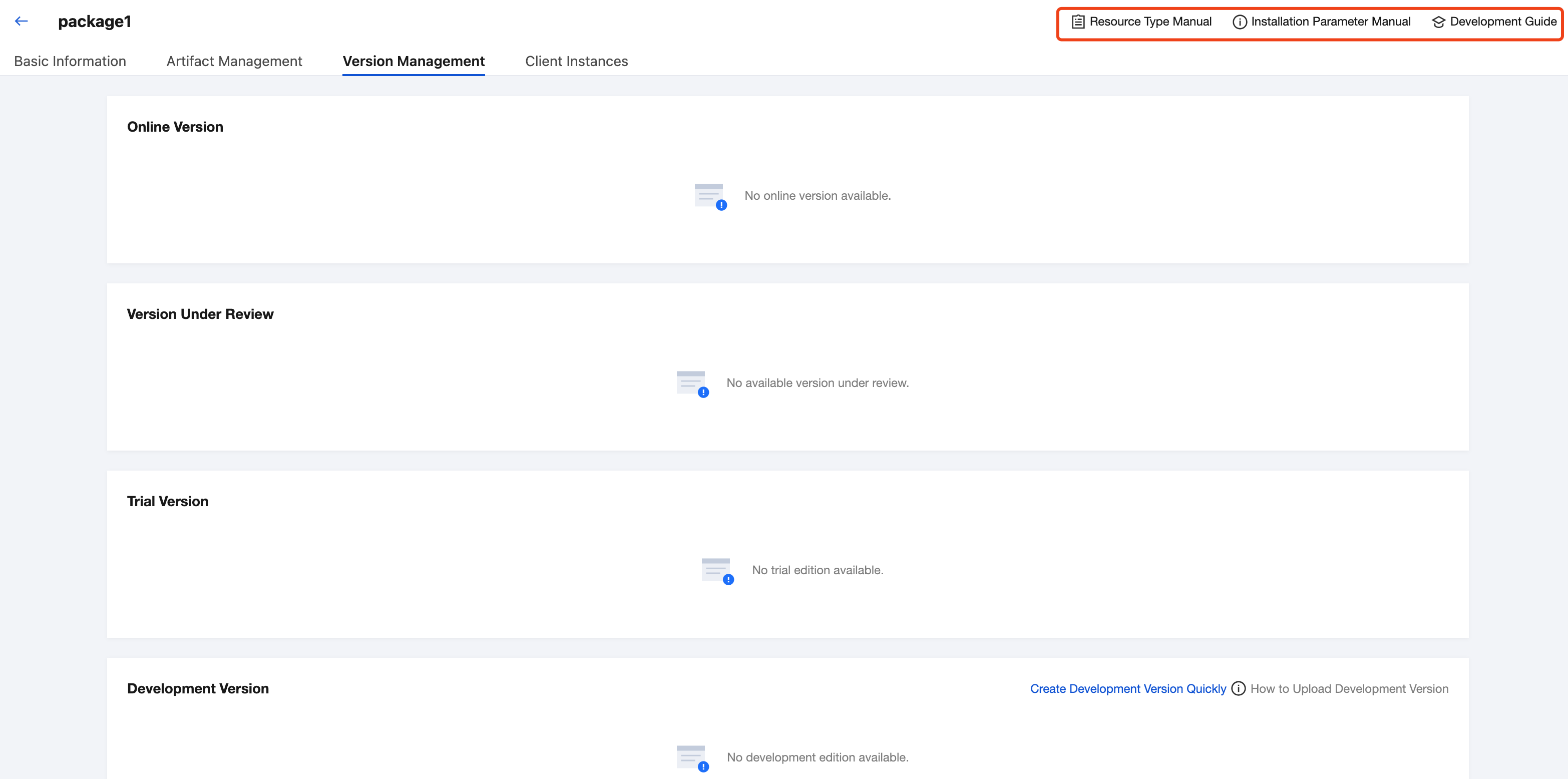 Advantage | Simple and quick, create using officially provided fixed templates. Just input a small amount of template parameters to quickly create an installation package and submit the development edition. | High flexibility, can create complex applications. Fully customize various types of resources and their parameters. |