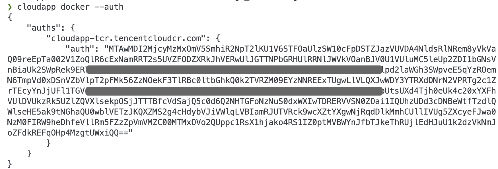 cloudapp docker --auth to obtain the Docker authorization file separately, suitable for CI build scenarios.
