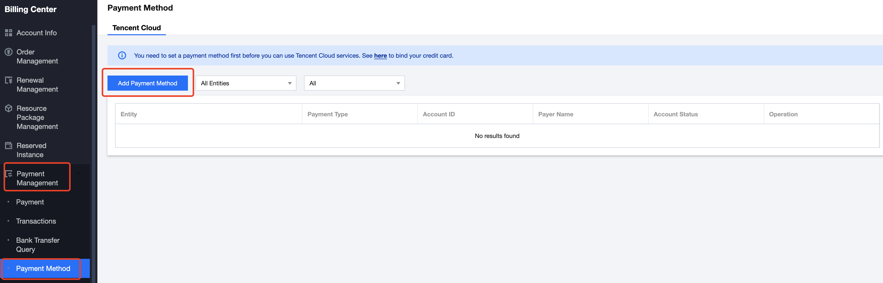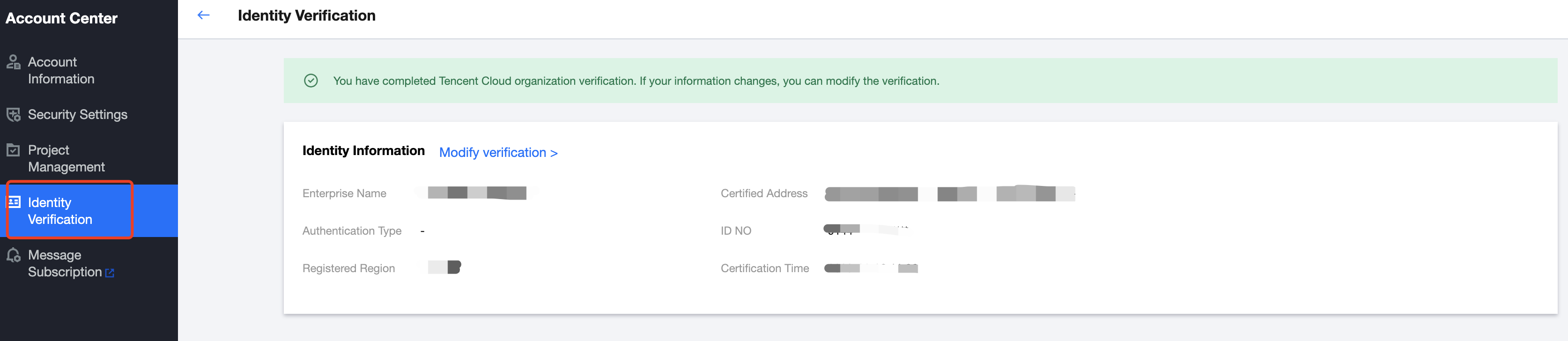 After completing the identity verification of your Tencent Cloud account, you can purchase Tencent Cloud products, withdraw cash from your account balance, etc. (If you have already completed the real-name authentication, you can skip this step.) 3. Bind a credit card