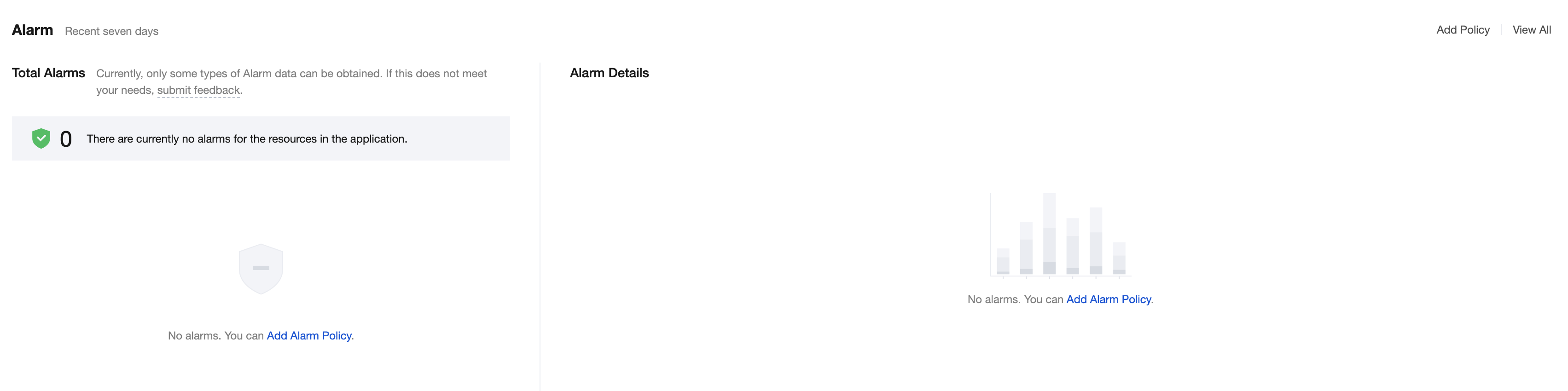 Basic information of the app, list of application resources, cost consumption, and alarms in the last 7 days can be viewed on the application details page.