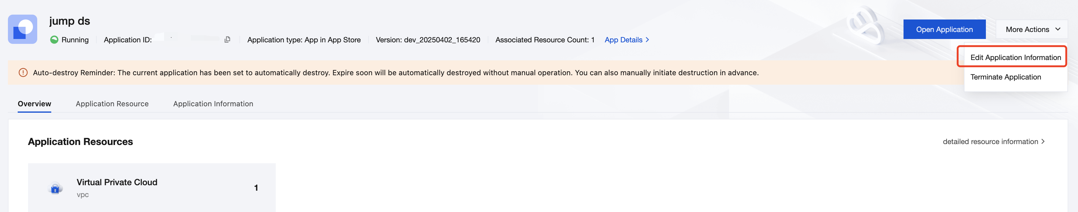 Click Edit Application Information in the upper-right corner of the application details page. A pop-up window for editing application information will appear.