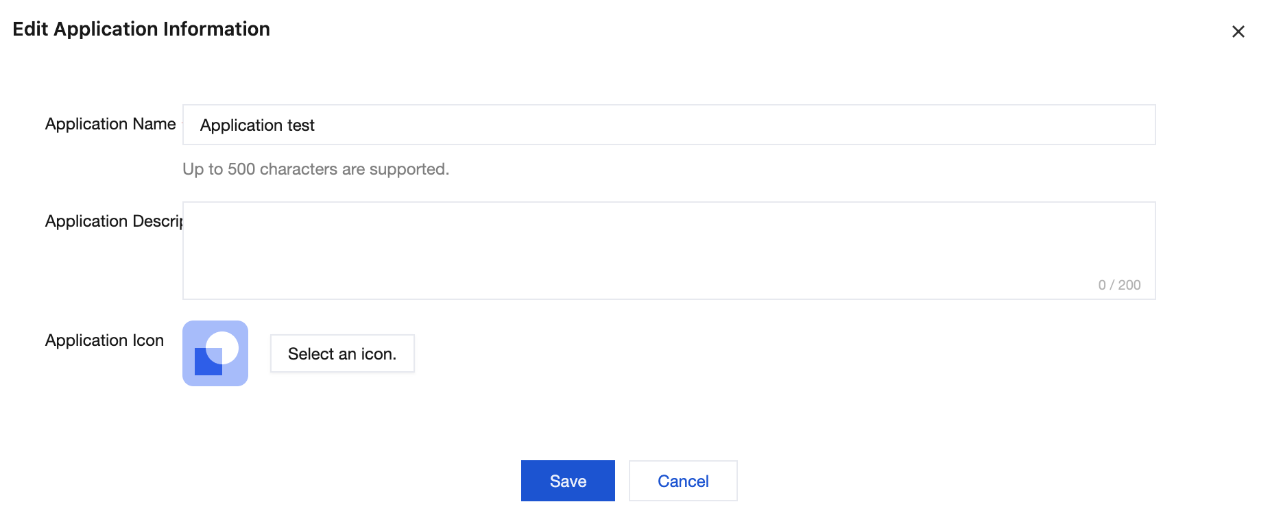 In the Edit Application Information window, you can edit the application name, application description, and application icon. After editing, save. Edit successfully.